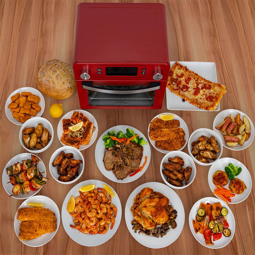 Deco Chef 24QT Stainless Steel Countertop Toaster Air Fryer Oven with Accessories Red