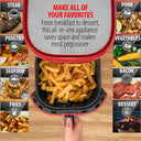 Using rapidly circulating superheated air, cook your food fast and evenly, with little to no oil. From breakfast to dessert, create lower-calorie dishes compared to classic frying without sacrificing taste!