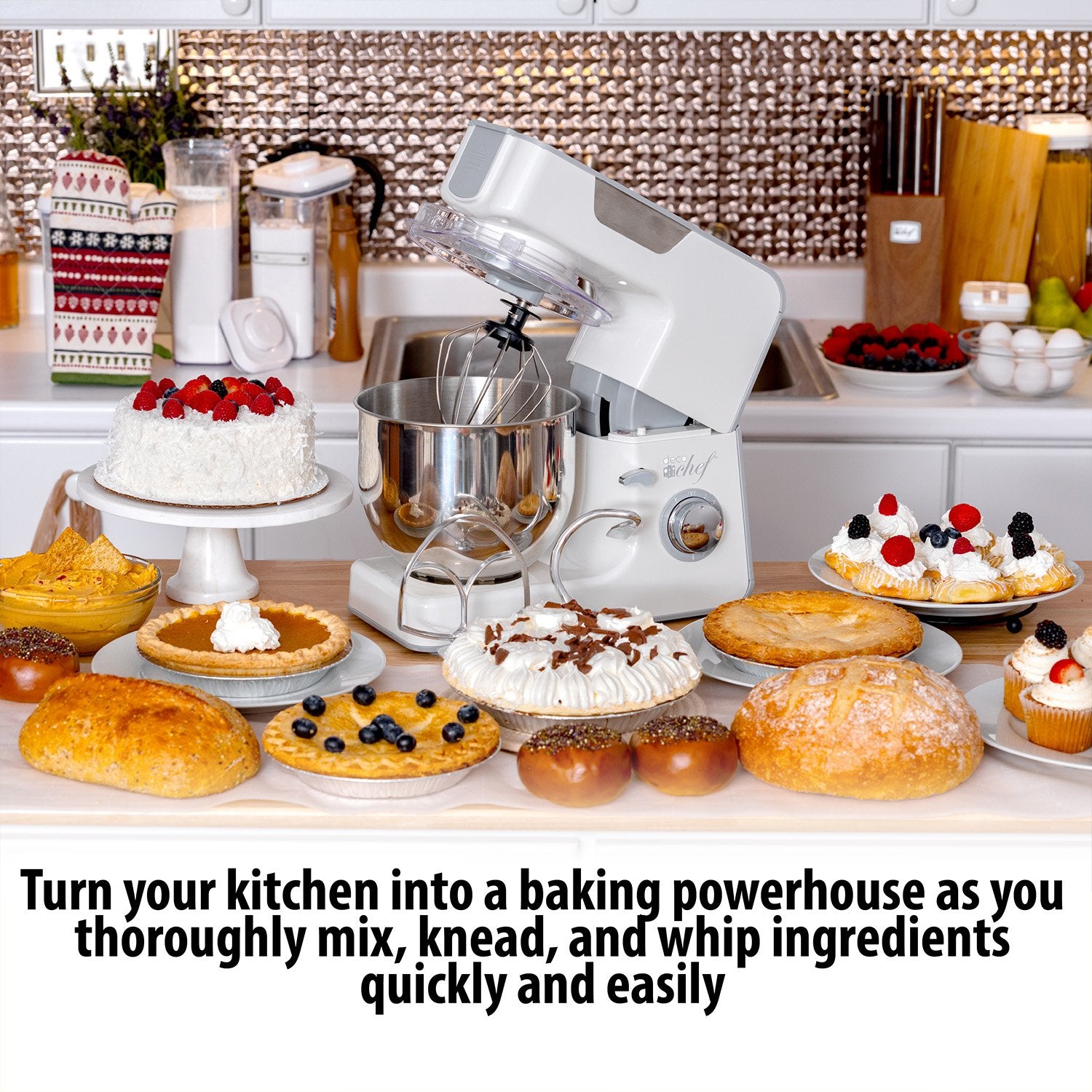 Turn your kitchen into a baking powerhouse as you thoroughly mix, knead, and whip ingredients quickly and easily