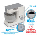 Featuring a powerful 550-watt motor, this standing mixer is able to power through the toughest doughs using 8-speed settings with pulse functionality. Easily blend ingredients with precision and reliability thanks to a full metal gear system.