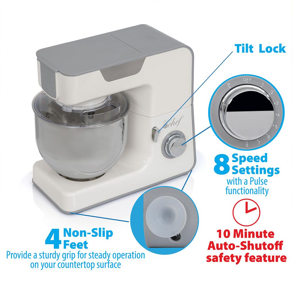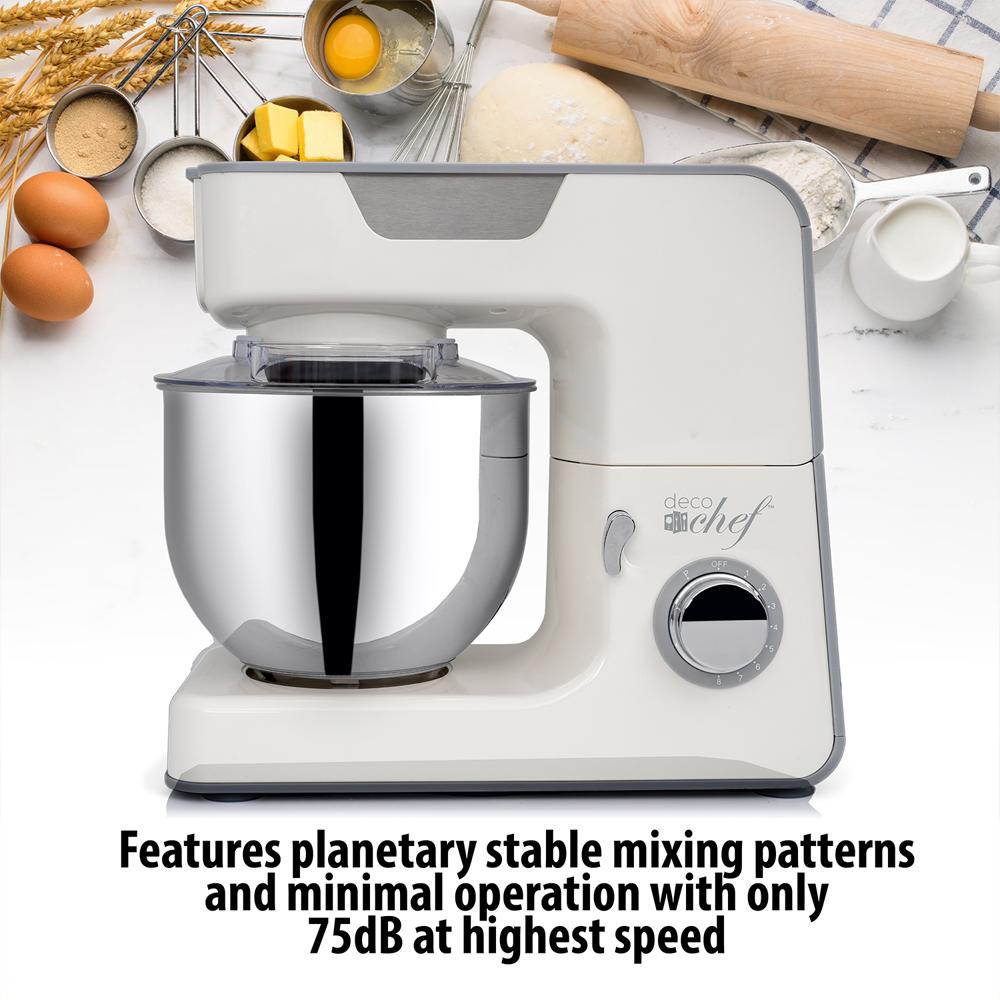 The Deco Chef 5.5 QT Kitchen Stand Mixer is a stylish and user-friendly planetary standing mixer that is the perfect complement to the avid baker and cooking enthusiast at home - combine, mix, beat, cream, knead, and whip your favorite deserts and dinner dishes into culinary perfection!