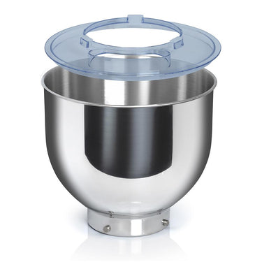 Mix in large quantities using the included 5.5-quart stainless steel bowl. Sturdy, easy-to-clean, and beautifully finished, mix flours, eggs, cookie, bread doughs, and more. The included clear splash guard keeps mess to a minimum.