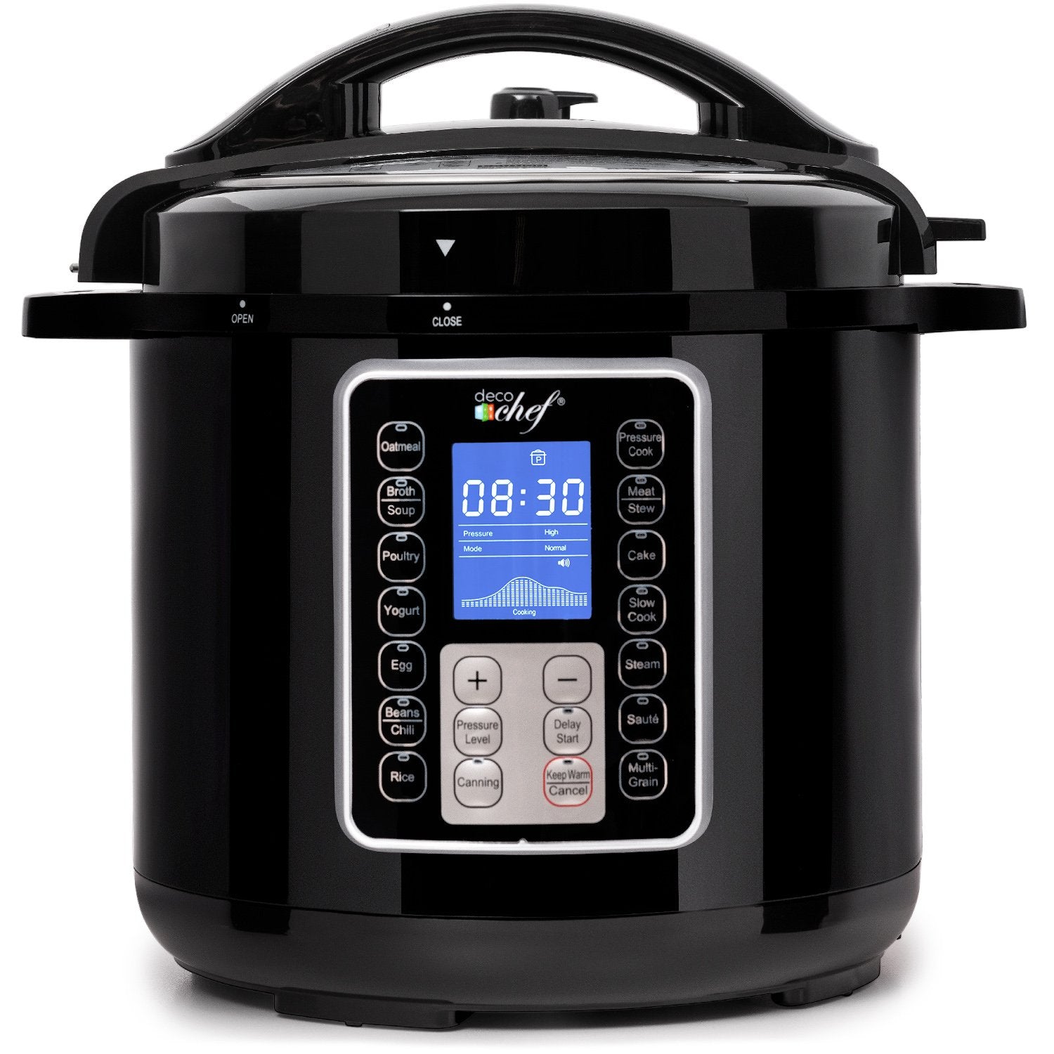 Using the finest materials and construction processes, the Deco Chef pressure cooker brings real and lasting value to your kitchen and dinner table. Built to last and deliver delicious foods, this stainless steel appliance utilizes high-quality rubber seals, heat-resistant handles, and resilient internal electronics.