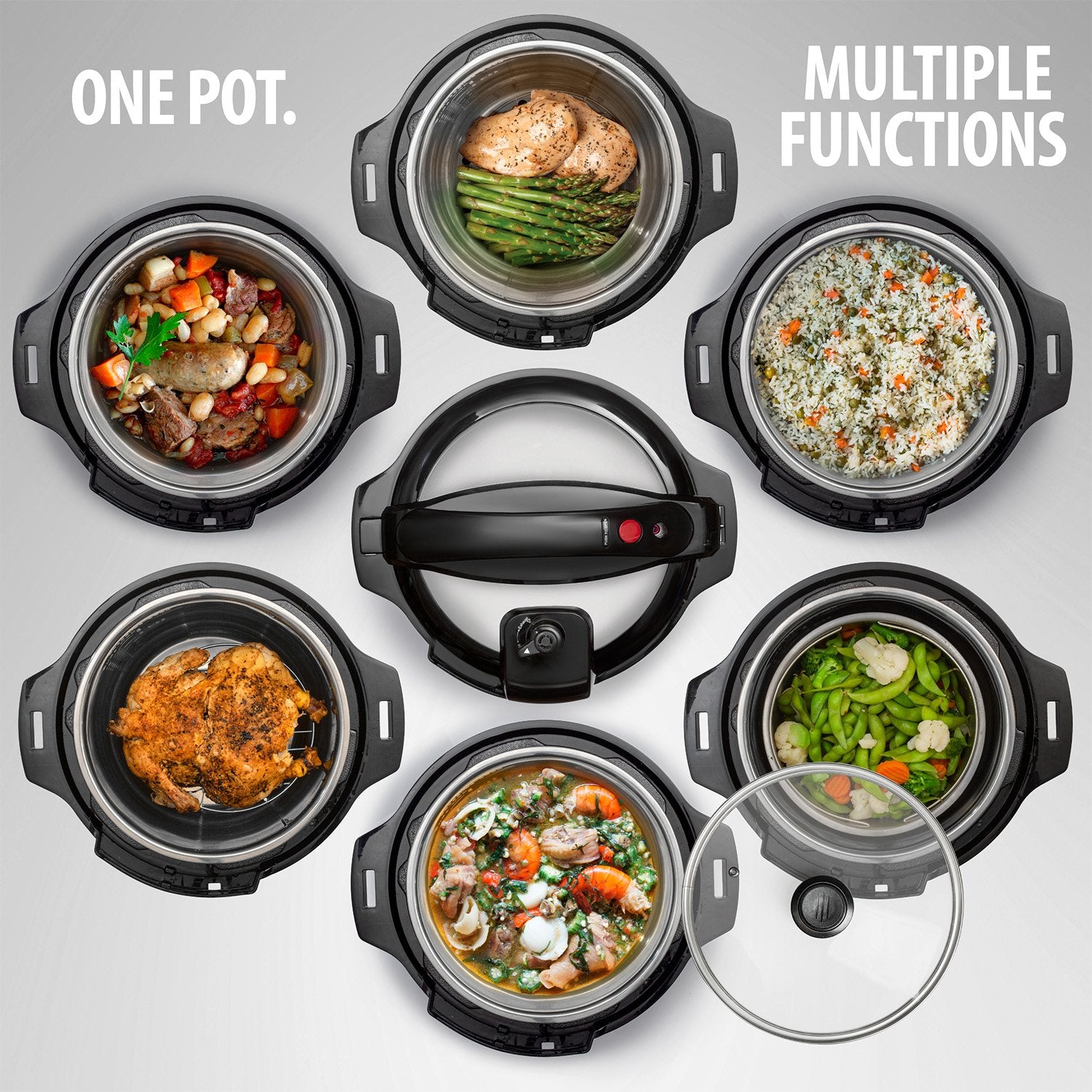 The DG6QTCSPC Deco Chef 6 QT 10-in-1 Pressure Cooker brings more than just delicious meals to your dinner table – take advantage of simple cooking processes, faster cooking times and healthier meals without the effort.