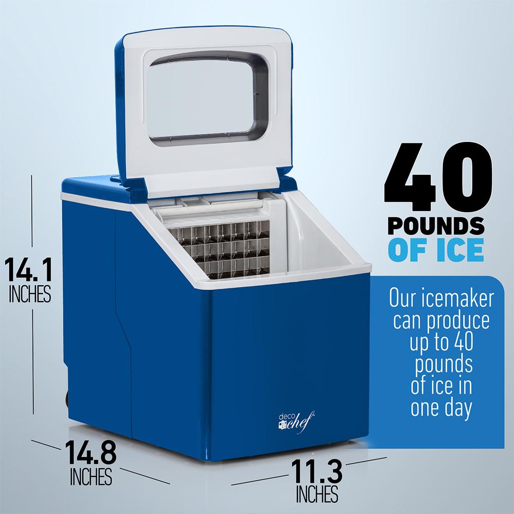 Deco Chef Countertop Portable Ice Maker 40 lb/Day Blue with Extended Warranty