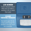 Screen indicators inform when your ice maker is working, is full, or needs more water