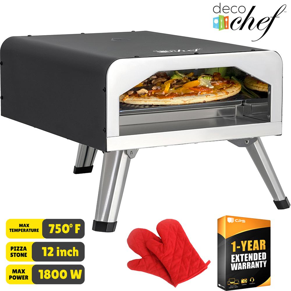 Deco Chef Electric Pizza Oven w/ 12" 2-in-1 Pizza Stone and Grill + Warranty Bundle
