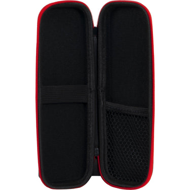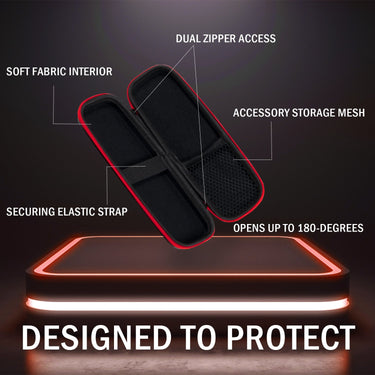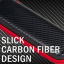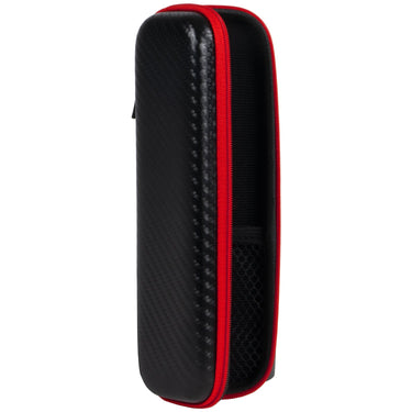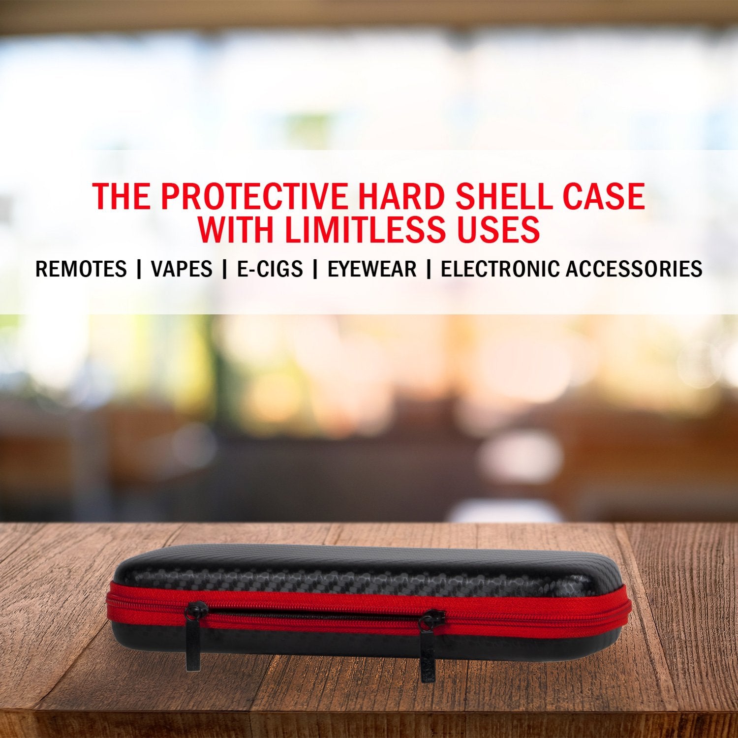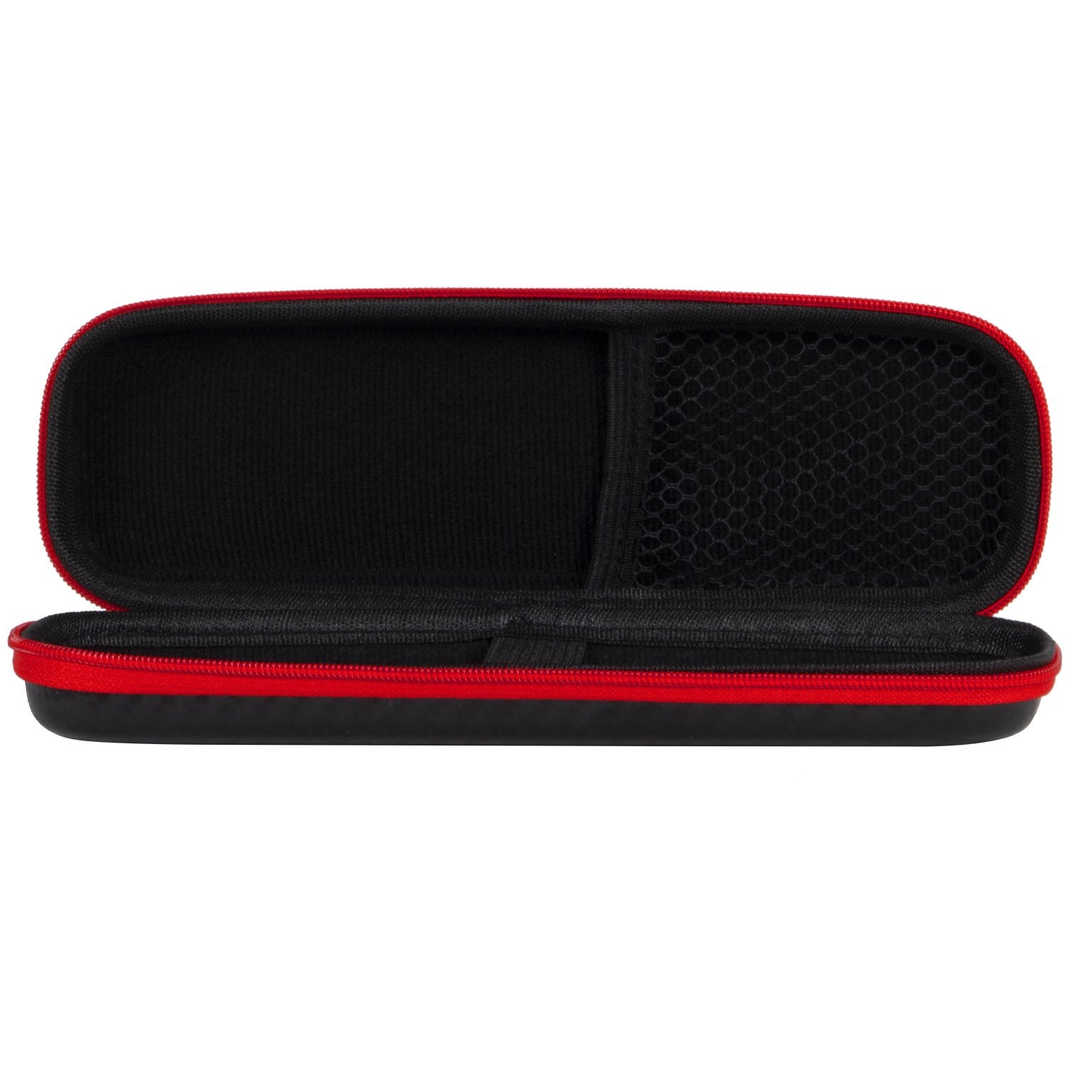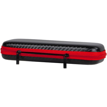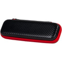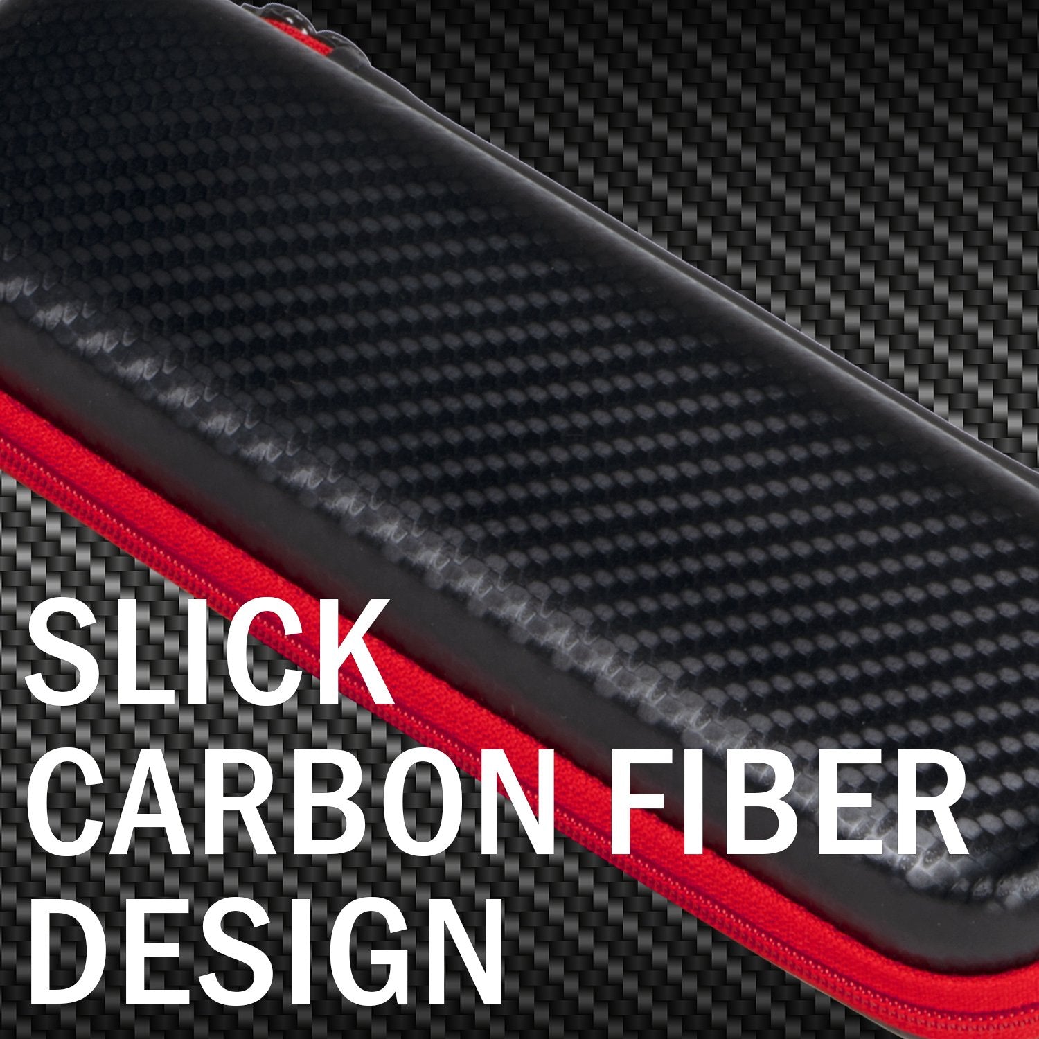 On the outside, a hardened EVA shell provides impact protection from drops and dings while keeping contents within safe and secure. Featuring a beautiful carbon fiber design, this case will stand out from the pack with its bright red double zipper closure.