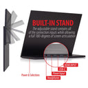 The adjustable stand contains all of the connection inputs while allowing a full 180-degrees of screen articulation