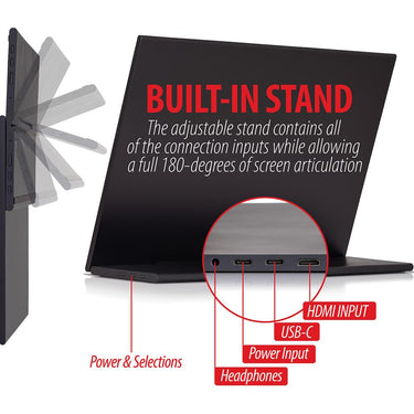 - Built-in stand features 180-degree adjustment