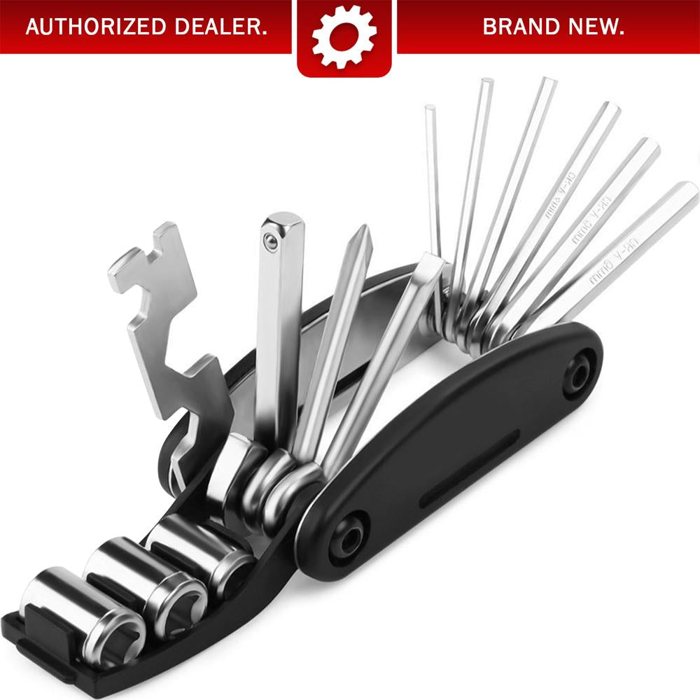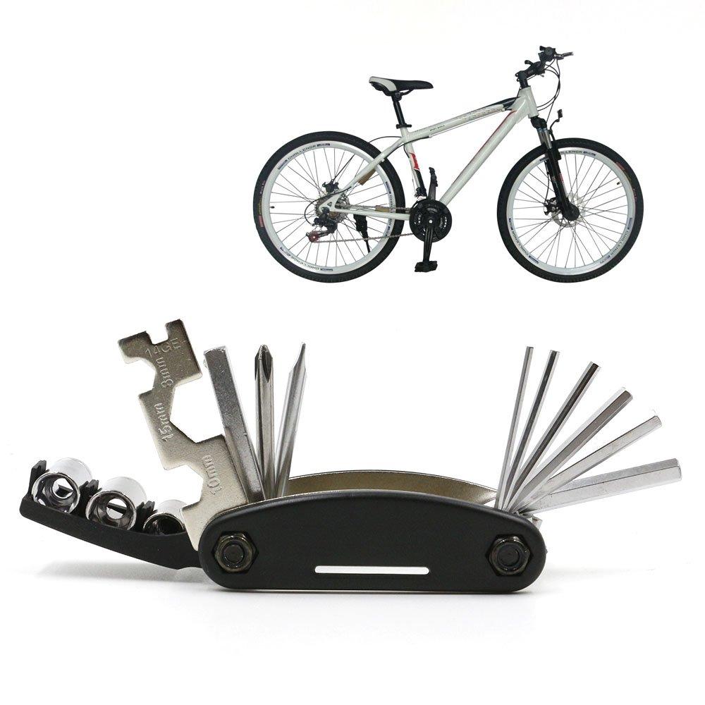 • 16 function bike tool includes Socket Hex Wrench 8/9/10mm | S Slotted Screwdriver | Phillips Head Screwdriver | Socket Extension Rod | Solid Wrench 8/10/15mm | Hex Key Wrench 2/2.5/3/4/5/6mm | Spoke Wrench
