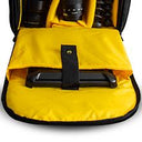 On the outside of the pack, you get two 9ā H x 6ā W zipper side pockets, one large 8ā H x 11ā W front facing zipper pocket, tripod storage, and a luggage tag window.