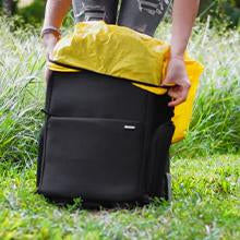 Constructed from high density waterproof nylon, a protective shield envelops your gear from water and other liquids. A detachable rain fly is also included to give yourself the ultimate confidence - when you may want to escape the rain, your camera equipment wonāt have to.