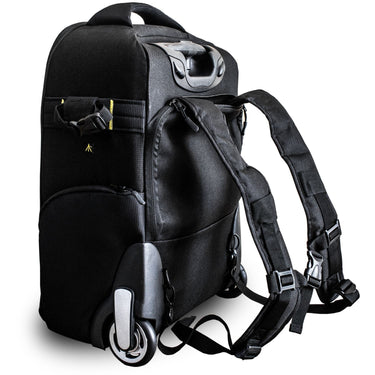 Featuring 3 ways to move, this camera storage case can be used as a wheeled trolley, a backpack, or handbag that is airplane friendly. Simply extend the telescopic trolley handle and youāll effortlessly wheel your camera gear safely without breaking a sweat. A rear compartment holds two adjustable shoulder straps, giving you the ability to turn your case into a backpack in seconds. If that isnāt enough, the cushy padded grab handle at the top gives youāre the option to turn your case into large handbag.