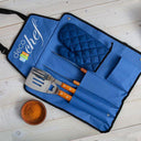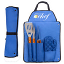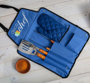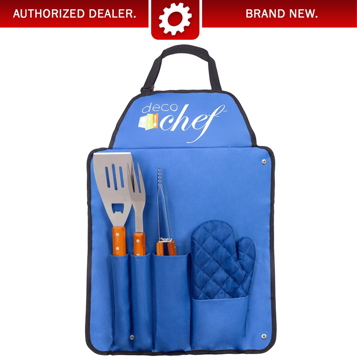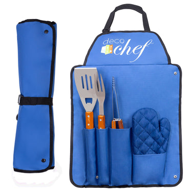 Deco Gear 5 Piece BBQ Tool Set with Custom Blue Apron