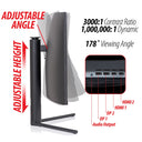 The R1500 curve rating of this monitor means you have an ideal viewing experience at nearly every angle. With an adjustable base, find the perfect height, tilt, and swivel adjustments that cater perfectly to your seating position and desk.