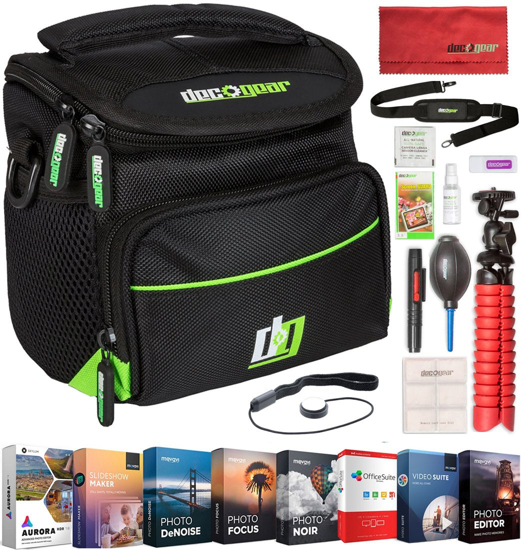 Deco Gear DSLR Mirrorless Camera Bag +Software Editing Bundle+Tripod & Bonus Accessory Kit