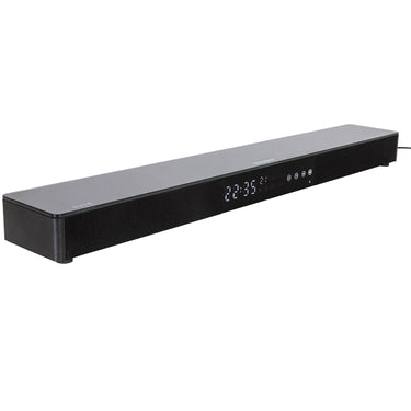 Each soundbar is constructed with a premium wood case and is topped with a beautiful tempered glass cover. This soundbar won’t have any trouble matching your décor, contemporary or otherwise.