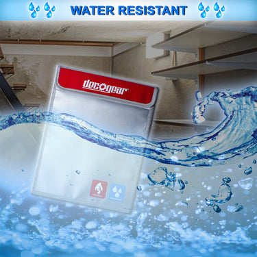 When dealing with a fire outbreak, water can be a surprising obstacle when it comes to protecting your valuables, whether from sprinkler systems, fire suppression, or leaks from damaged pipes. Luckily, our fireproof bag is highly water resistant, repelling anything from a few drops to a constant direct stream.