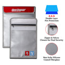Our bags provide 100% fireproof performance thanks to a specially designed dual layer of fire-retardant fiberglass. Fiberglass is a key raw material in the making of fireproof bags thank to its heat-resistant properties. Take a bag to open flame and watch as it suppresses direct content and is virtually unscathed, resisting temperatures of up to 2192 ℉ (1200 ℃).
