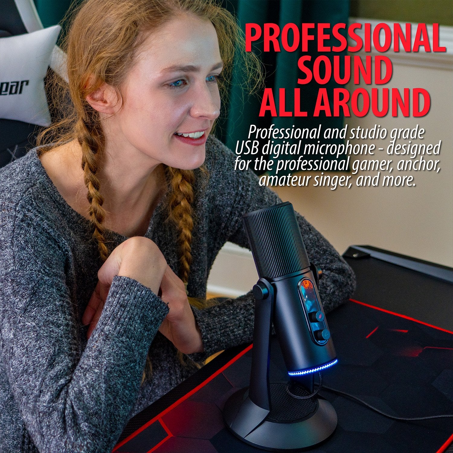 Professional and studio-grade USB digital microphone - designed for the professional gamer, anchor, amateur singer, and those in need of high-quality recording.