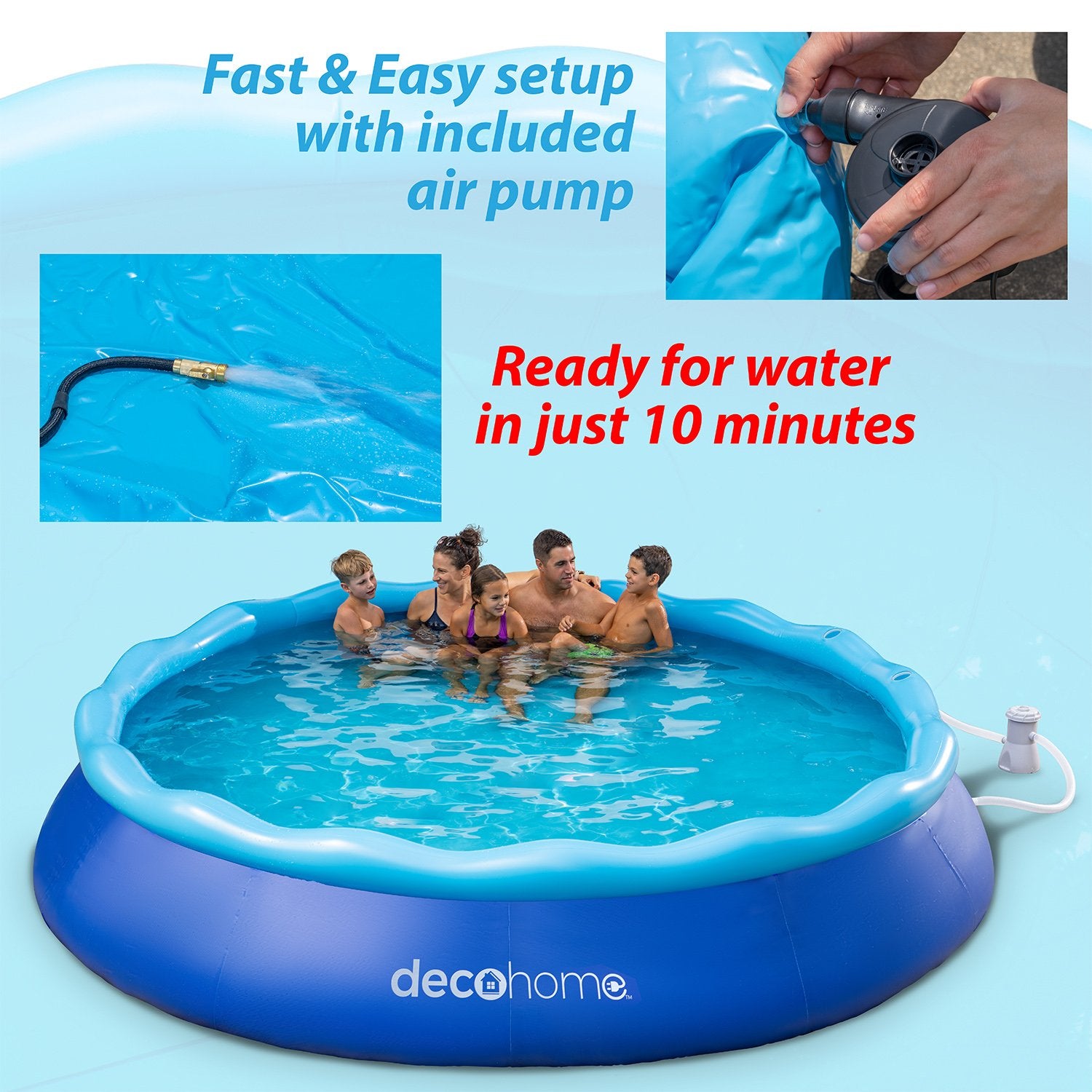 The Deco Home Inflatable pool brings relaxing summer vibes to nearly every backyard! Have a spot that’s completely flat and even in your backyard? You’re ready for a pool that is easy to set up and easily stored when you don’t need it.