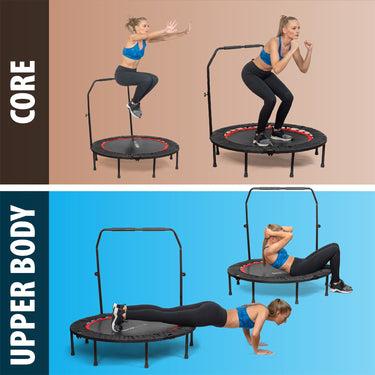 Utilizing 24 high-strength tension springs, a tight jumping platform 48 inches in diameter propels you upwards. With each jump, users will expend energy at their own desired pace and height. Tone leg muscles and improve cardio.