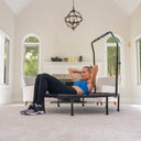 Built with quality components, jump confidently, and safely. Perfect to use indoors at home or bring with you to the gym. Bring it with you outdoors in your backyard, on your deck, or at the park. For advanced users, this is a great warmup device or used as part of a training circuit. This at-home fitness trampoline supports up to 250 lb.