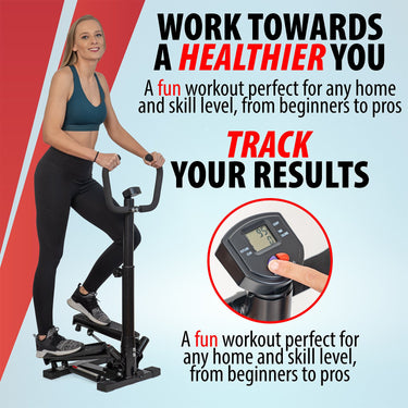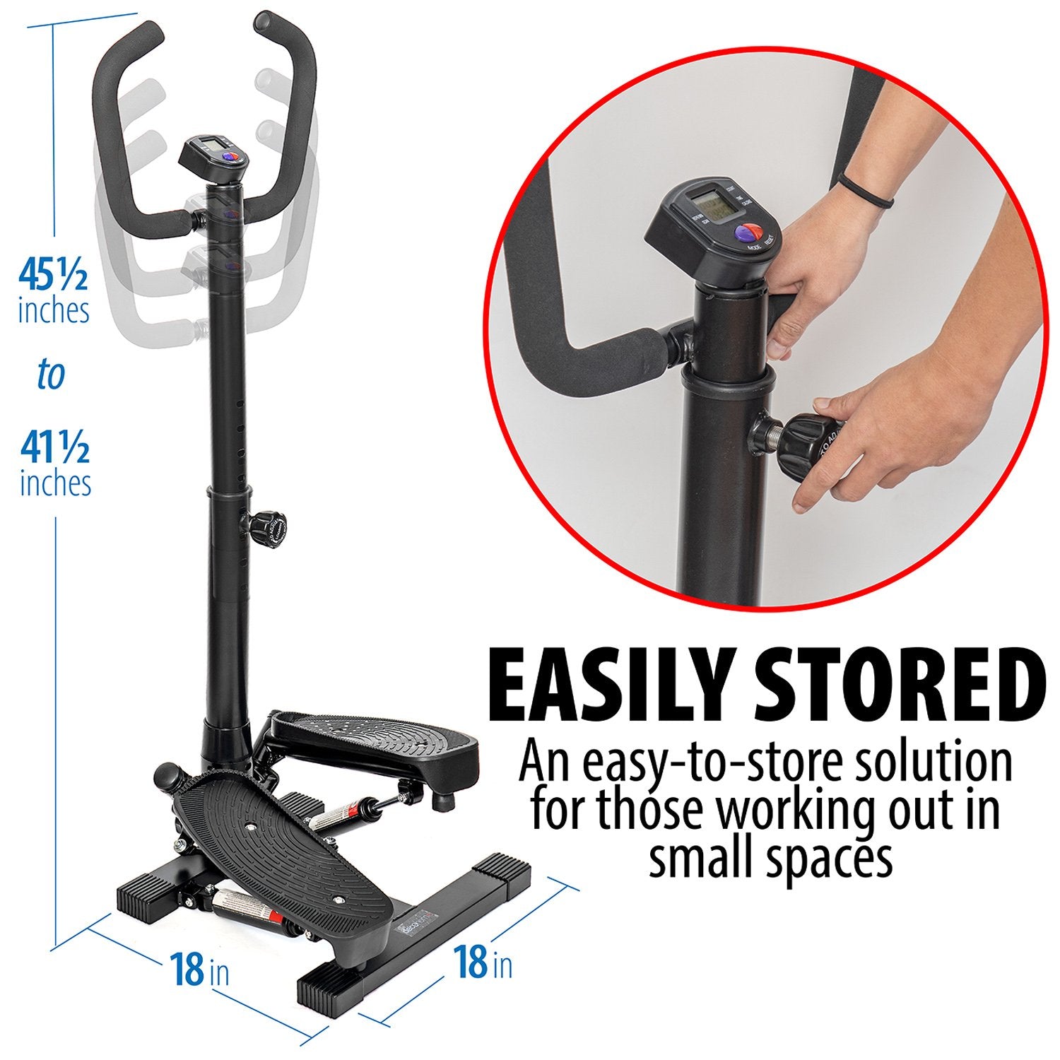 Whatever your purpose, this step machine is packed with features. A handy LCD screen monitors and tracks your workout time, calories, step count, and a cycling mode to see all the info. Handlebars help to provide balance for those new to stepping cardio and non-slip pedals provide sure footing. Go as hard or as light as you need!