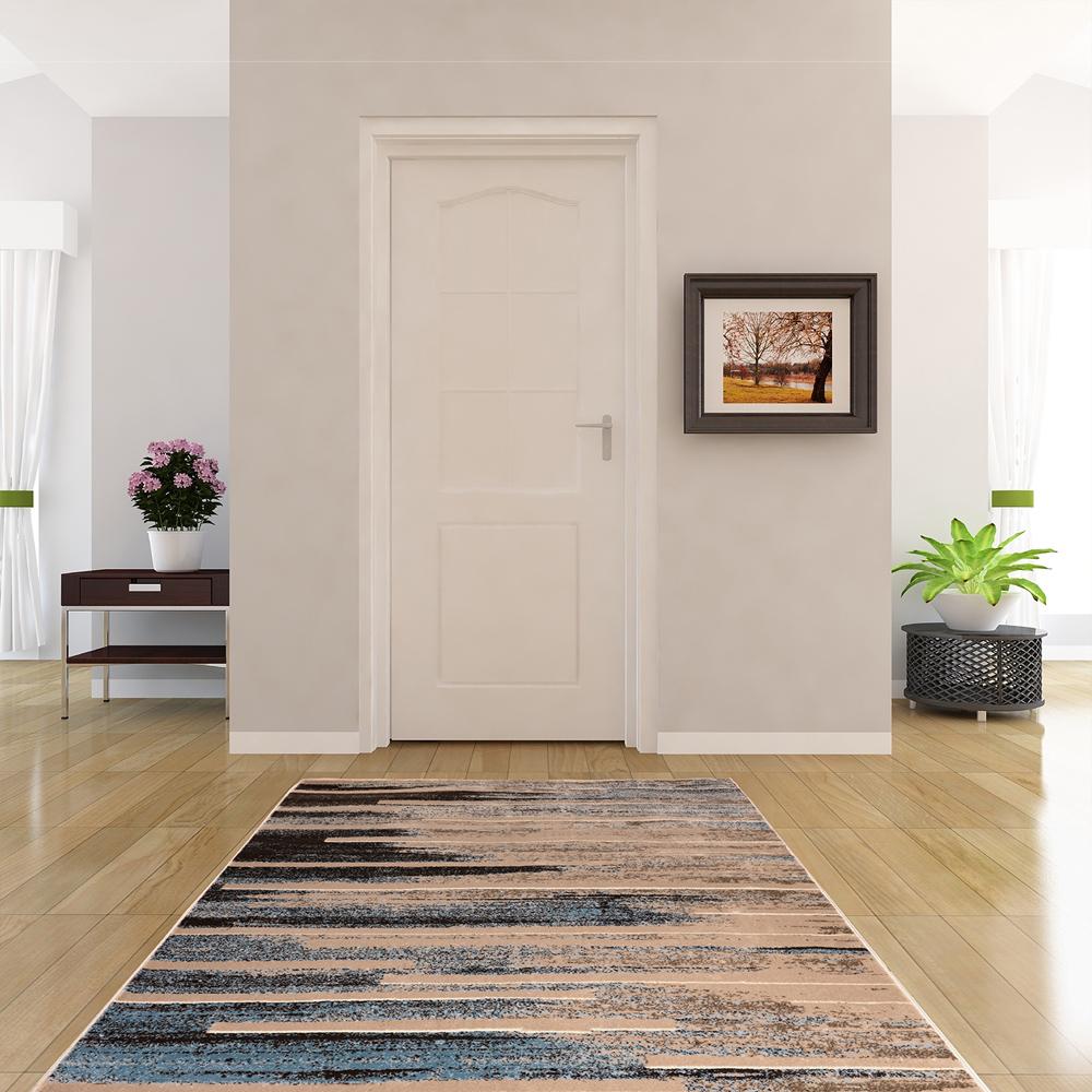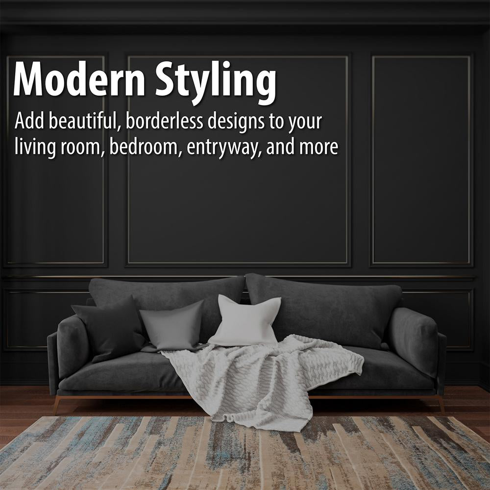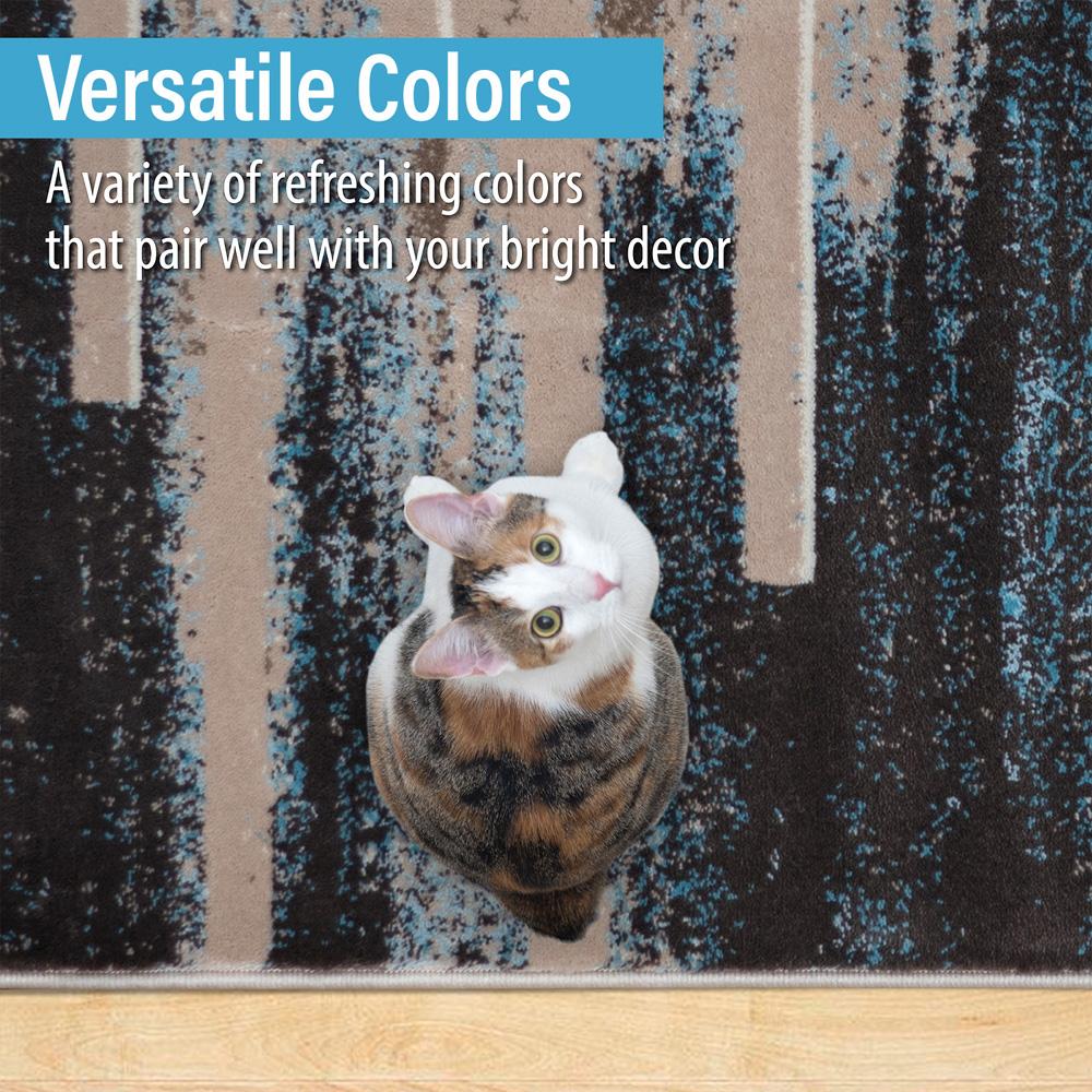 Deco Home Blue/Tan Modern Indoor Area Rug with Non-Slip Backing, 5.25' x 7.5' - Open Box