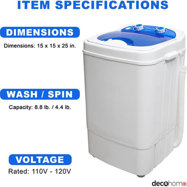 Deco Home 250W Portable Washing Machine with 8.8 lb Capacity - WSHM01 - Open Box