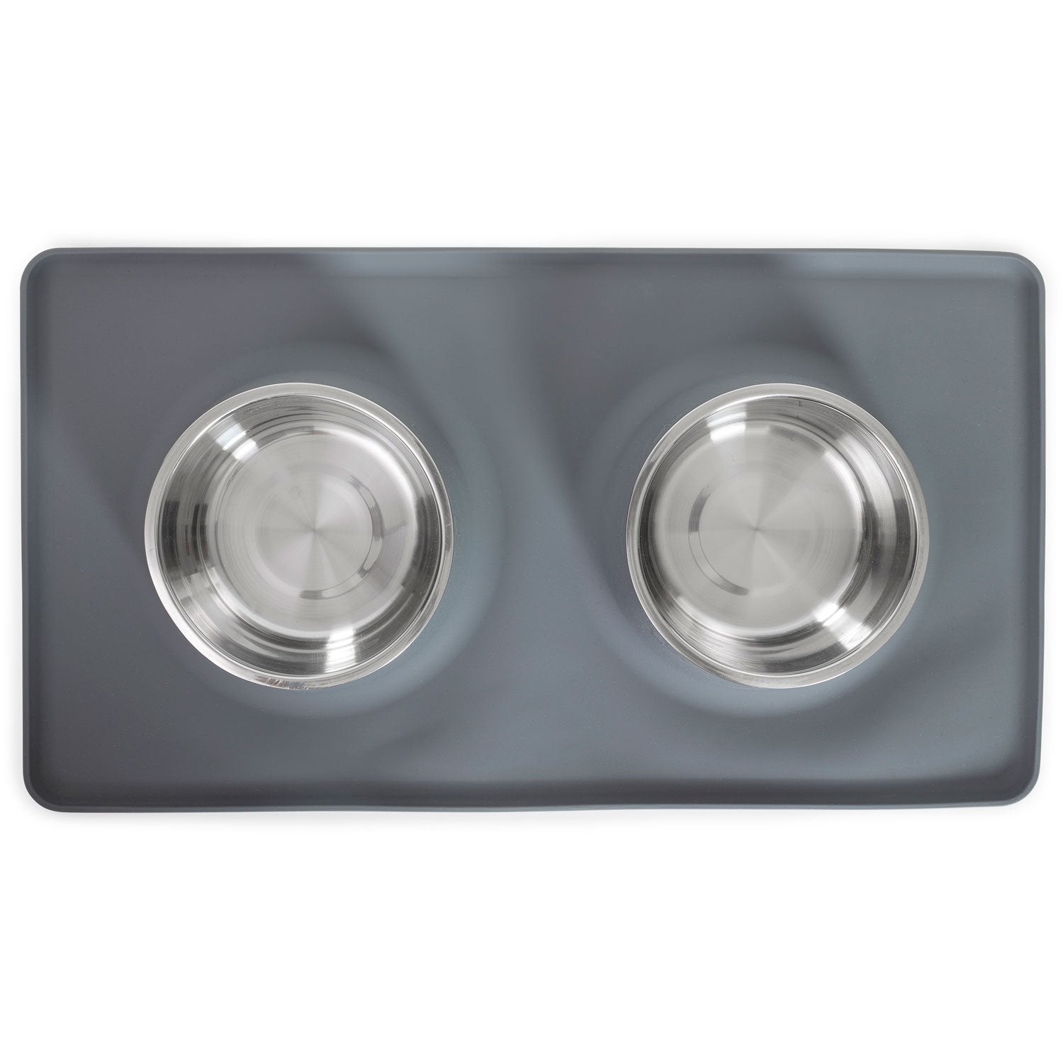 Deco Pet’s Dual Stainless Steel Food and Water Bowls are the perfect solution for both you and your pet. Ideal for small to medium sized pets, each set comes with two removable bacteria resistant 40 fl. oz stainless steel bowls, making for easy cleanup. Additionally, a molded silicone catch-all mat with raised outer edge surrounds each bowl so excess water splashes and food don’t make it to your floor.