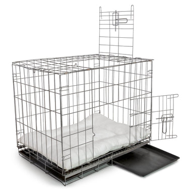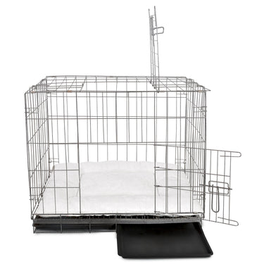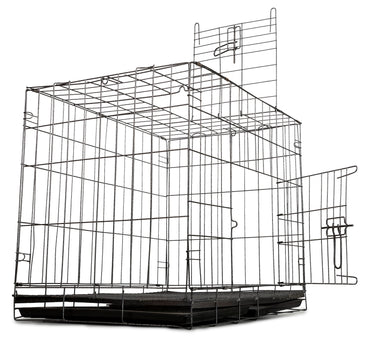 Deco Pet's Folding Single Door Metal Pet Crate is constructed to be strong and durable while providing your pet with safety, security, and comfort. The swing-out front door is easy to open, close, and securely lock. Included are plastic base pans that sit on the bottom for easy cleanup. A divider panel is included as well, allowing your crate to grow as your pup grows.