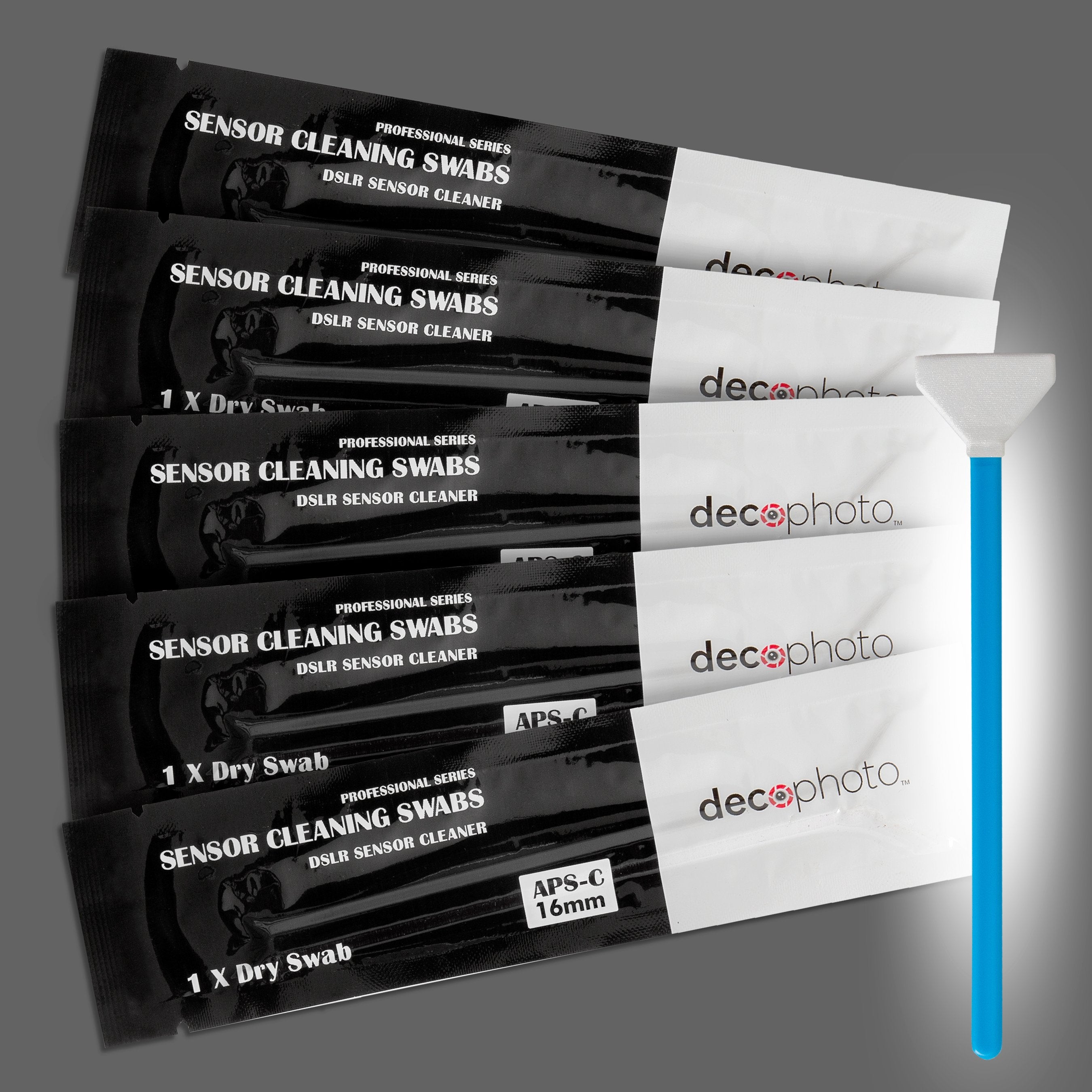 Deco Gear’s Sensor Cleaning Swabs are the best way to clean your camera's sensor to maintain the best image quality your camera can provide. Made with super fine anti-static fabric the angled design provides even saturation of the sensor. The swabs are vacuum sealed to ensure no dust gets on the swab prior to use. The mini-channels, with contour, provide an even saturation of the swab’s paddle surface while preventing pooling and vertical flow at the edge. This reduces streaks associated with traditional flat surface swabs. The mini-channels also provide an extra reservoir to absorb the excess liquid and prolong the moisture life of the swab during the sensor cleaning process.