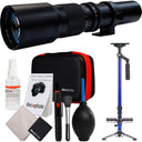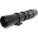 This 500mm f/8 Multi Coated Telephoto is a refractor style T-mount lens, utilizing lightweight aluminum alloy construction.  The multi-coated optics provide crisp, high contrast, and flare free images of distant subjects.  The aperture settings from f/8 to f/32 retain a full range of exposure and depth of field settings.  The rotatable tripod mount provides optimal balance, and rotates quickly and easily for vertical shooting.  This 500mm Telephoto lens is perfect for nature, sports, and landscape photography.  It also comes with a soft carrying case, and both front and rear caps.