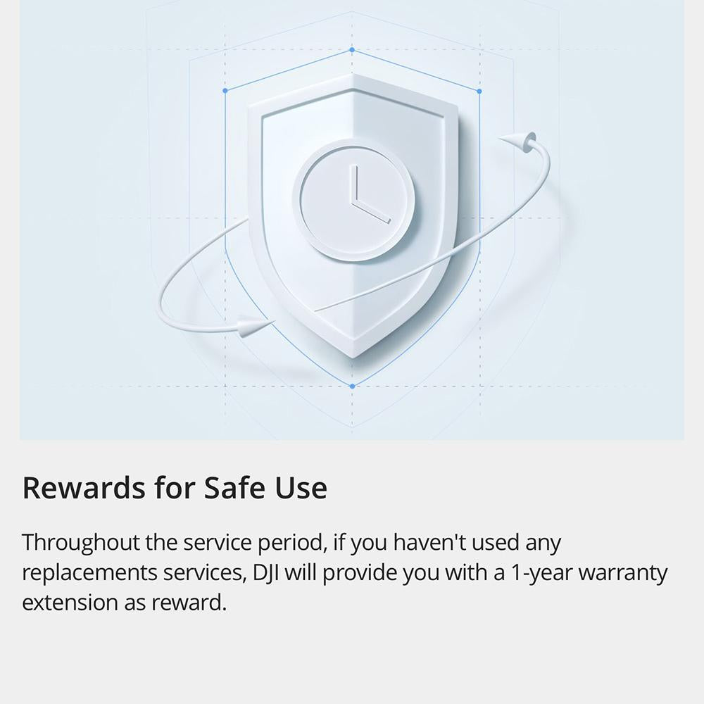 Throughout the service period, if you havent used any replacements services, DJI will provide you with a 1-Year warranty extension as reward.