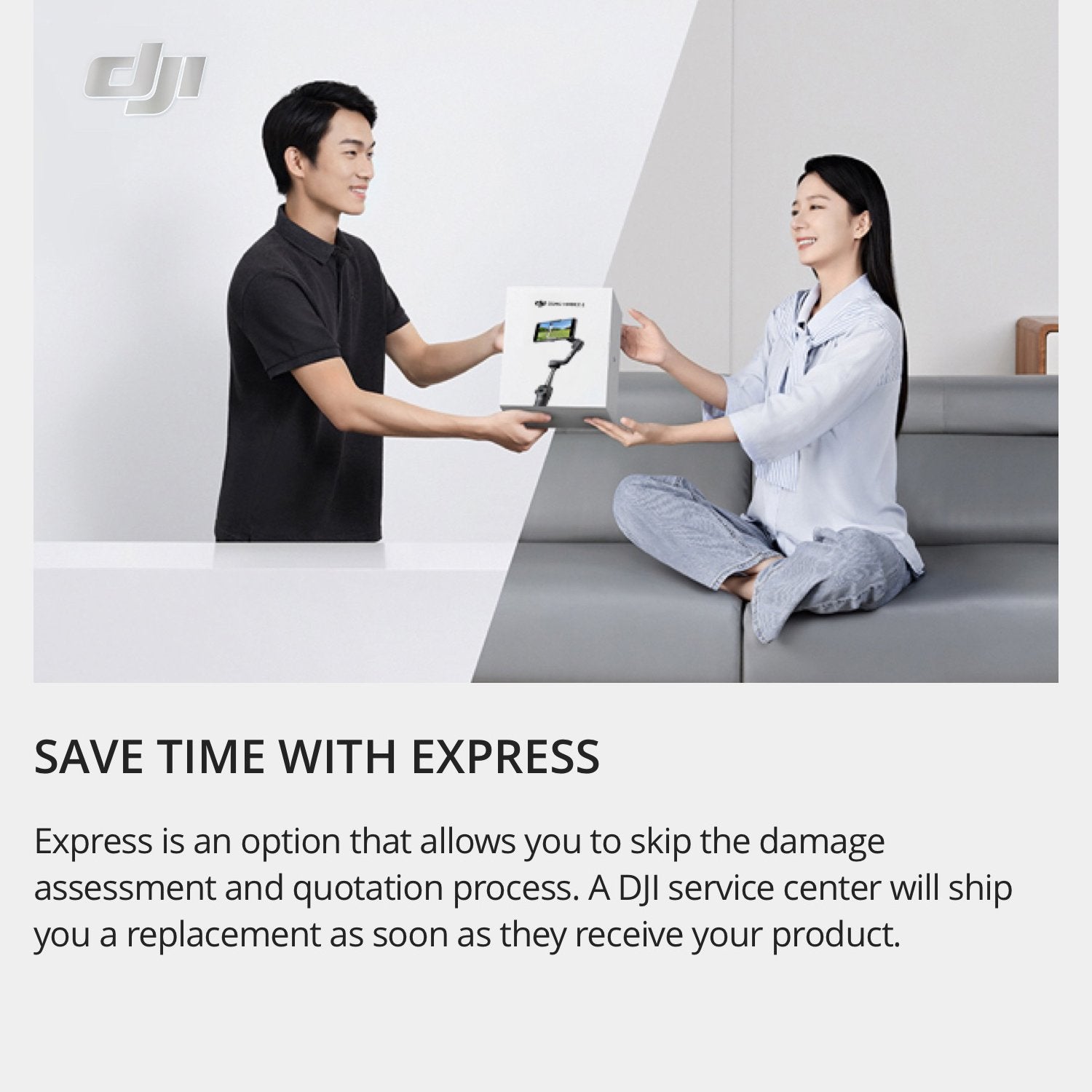 If damage occurs to the product during normal use or from an accident, after completing the replacement service process, you can obtain a functional product from DJI. Please note that a replacement fee is required for product replacement.
