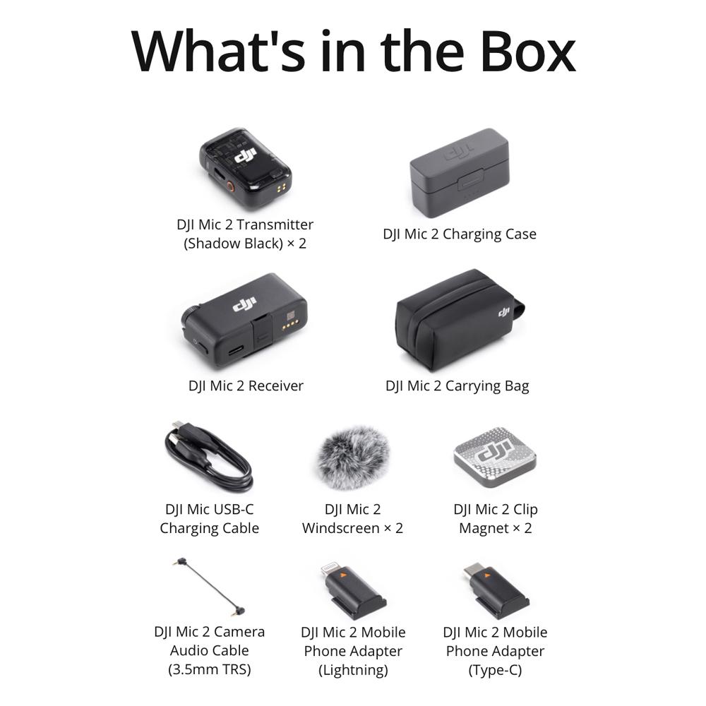 - DJI Mic 2 (2 TX + 1 RX + Charging Case) CP.RN.00000325.01 - INCLUDES: