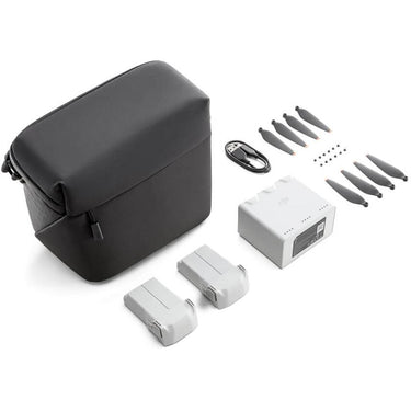 DJI Mini 3 Pro Fly More Kit Plus includes two Intelligent Flight Batteries Plus, a Two-Way Charging Hub, data cable, shoulder bag, spare propellers, and screws, providing comprehensive support for your aerial photography experience, at a better price than buying separately.