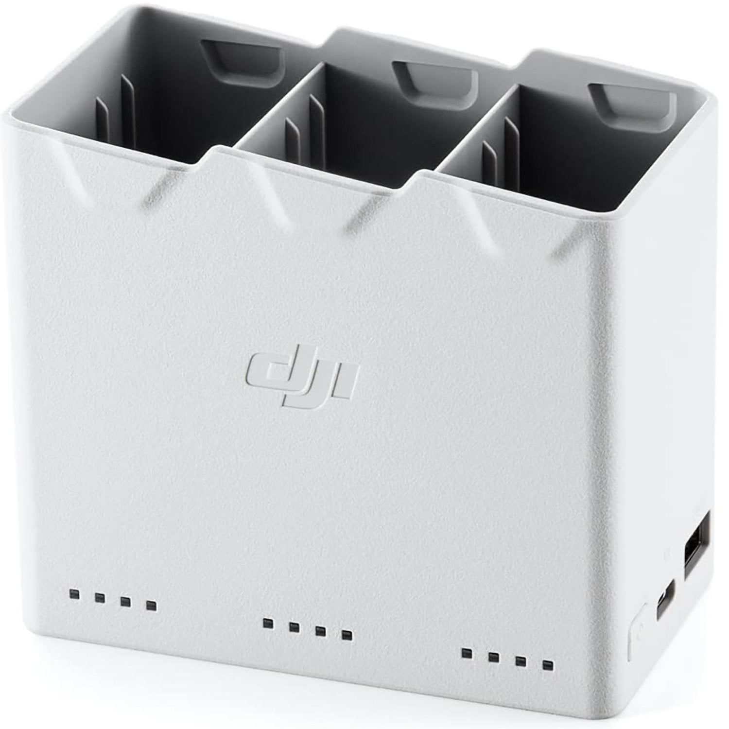 The Two-Way Charging Hub can charge the remote controller and three batteries in sequence. It can also be used as a mobile power source and store batteries for convenient carrying.