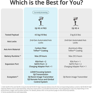 - DJI RS 4 Pro Combo 3-Axis Gimbal Stabilizer with Extended Battery & Dual Motors