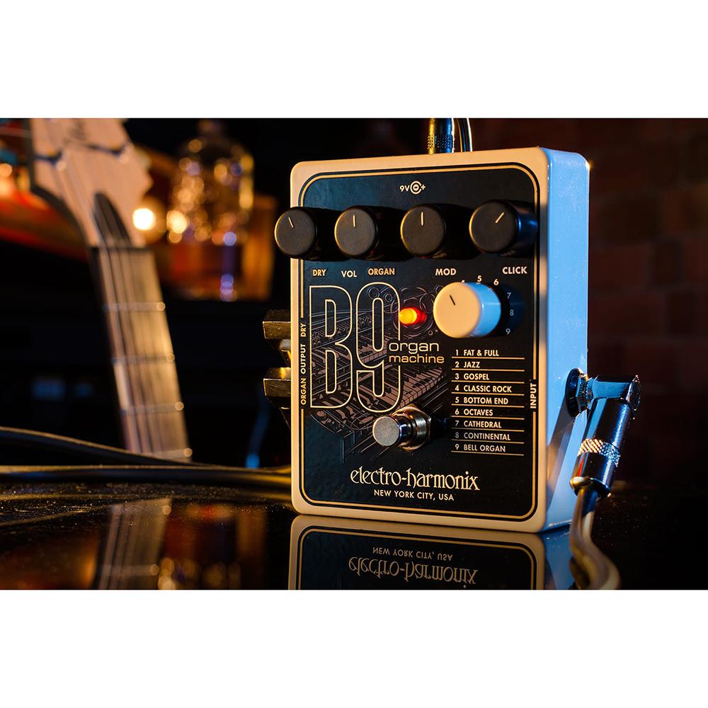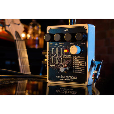 With 9 presets that were finely tuned to emulate the most legendary organs from the ‘60s and beyond, the EHX B9 Organ Machine will transform your guitar or keyboard. Control the instrument’s signature percussive click and sweet modulation. Blend your dry signal to create lush layers. Enough tonewheel and combo organ inspiration to light your fire and cook up some green onions!