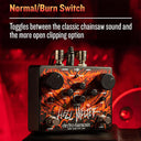 Boost Footswitch engages an input gain boost and volume boost which is internally adjustable. The Normal/Burn switch toggles between the classic chainsaw sound and the more open clipping option.