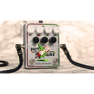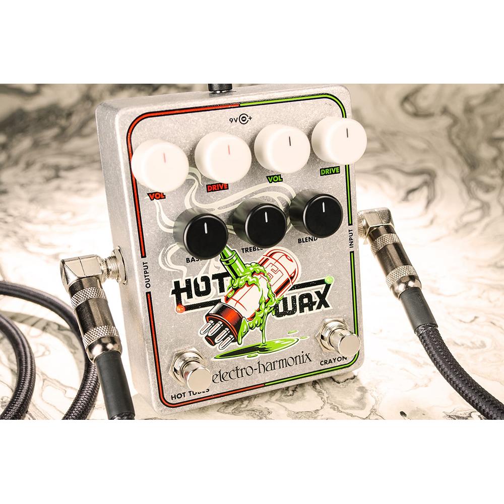 Awesome on guitar and bass, the EHX Hot Wax fuses our Hot Tubes and Crayon pedals into one powerful dual-overdrive. Each section can be engaged independently, for two very different overdrive flavors, or together to create a massive overdriven sound.