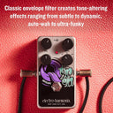 Envelope controlled filter is an effect type that ventures beyond the mainstream yet is equally at home in a wide range of genres and equally effective on guitar, bass, keys, horns and more. Electro-Harmonix is a pioneer in this effect category and has been making envelope controlled filter pedals since the 1970s! The Nano Q-Tron springboards off that deep heritage.