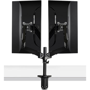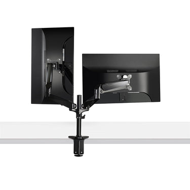 The Premium Gas Spring Dual Monitor Mounting Arm from Fotolux is a sturdy and secure monitor mounting system capable of supporting displays from 15 to 27 inches long. It's constructed out of rugged aluminum and utilizes gas spring mechanisms to hold monitors up to 17.6 pounds. With two articulating halves, this mount lets you swivel, tilt, rotate, and adjust the height of your monitor to your preferred viewing experience. A low-profile clamp ensures it is compatible with most desks.