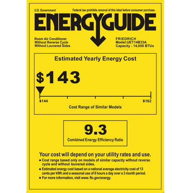- 14,000 BTU Smart Thru-The-Wall Air Conditioner with 10,600 BTU Electric Heat (UET14B33A)