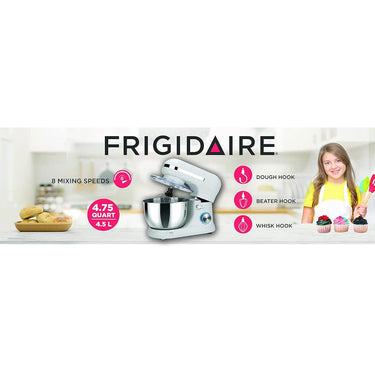 Frigidaire 4.5 Liter Stand Mixer, 8 Speeds, Dough Hook, Metal Whisk Open Box