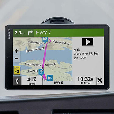 When paired with the Garmin Drive app, you’ll be able to see text messages and other notifications from your phone displayed on the navigator’s screen.