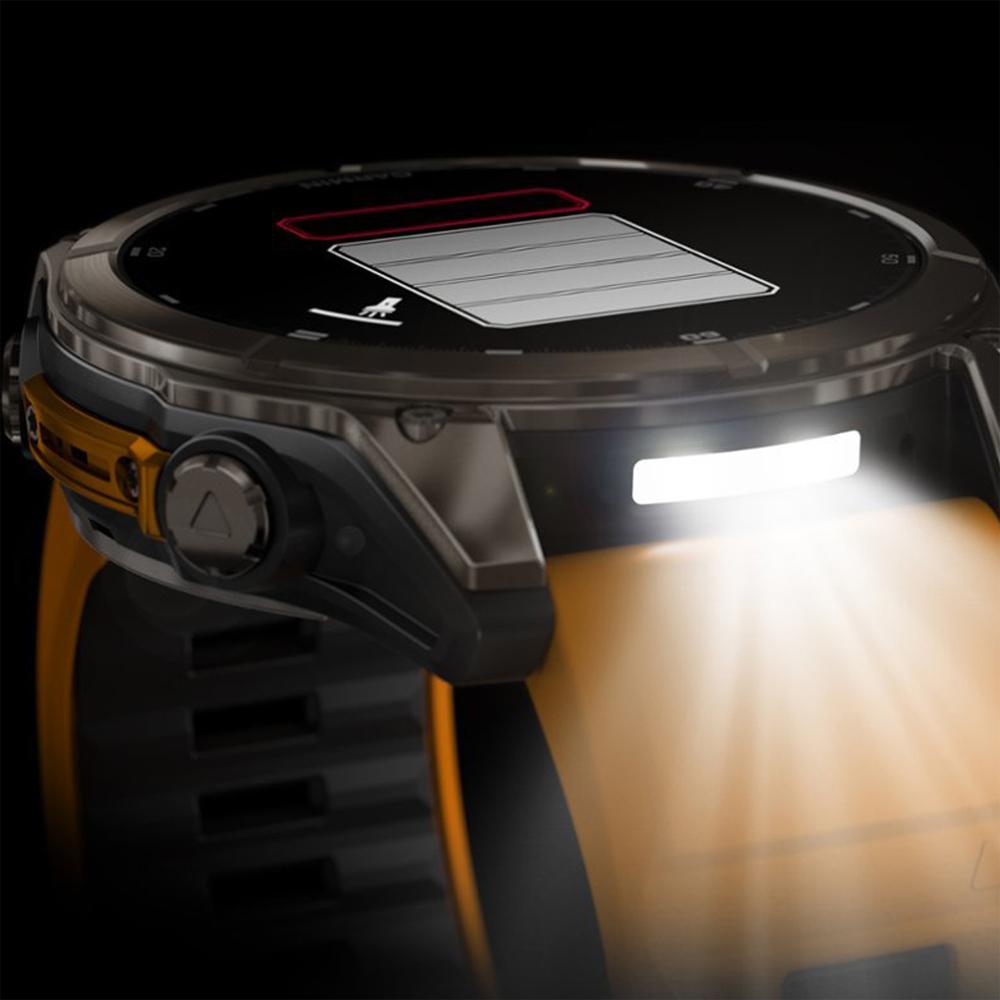 For serious athletes and adventurers who want to push beyond their limits, this premium multisport GPS smartwatch is built to perform — with advanced strength training features, dive capability, an internal speaker and mic for voice features, a built-in LED flashlight and more. Be limitless. The fēnix 8 multisport GPS smartwatch is built for serious athletes and outdoor adventurers who want to push beyond their limits. It features a big, bright 1.4” AMOLED display with scratch-resistant sapphire lens, durable titanium bezel and powerful built-in LED flashlight for after-dark visibility.